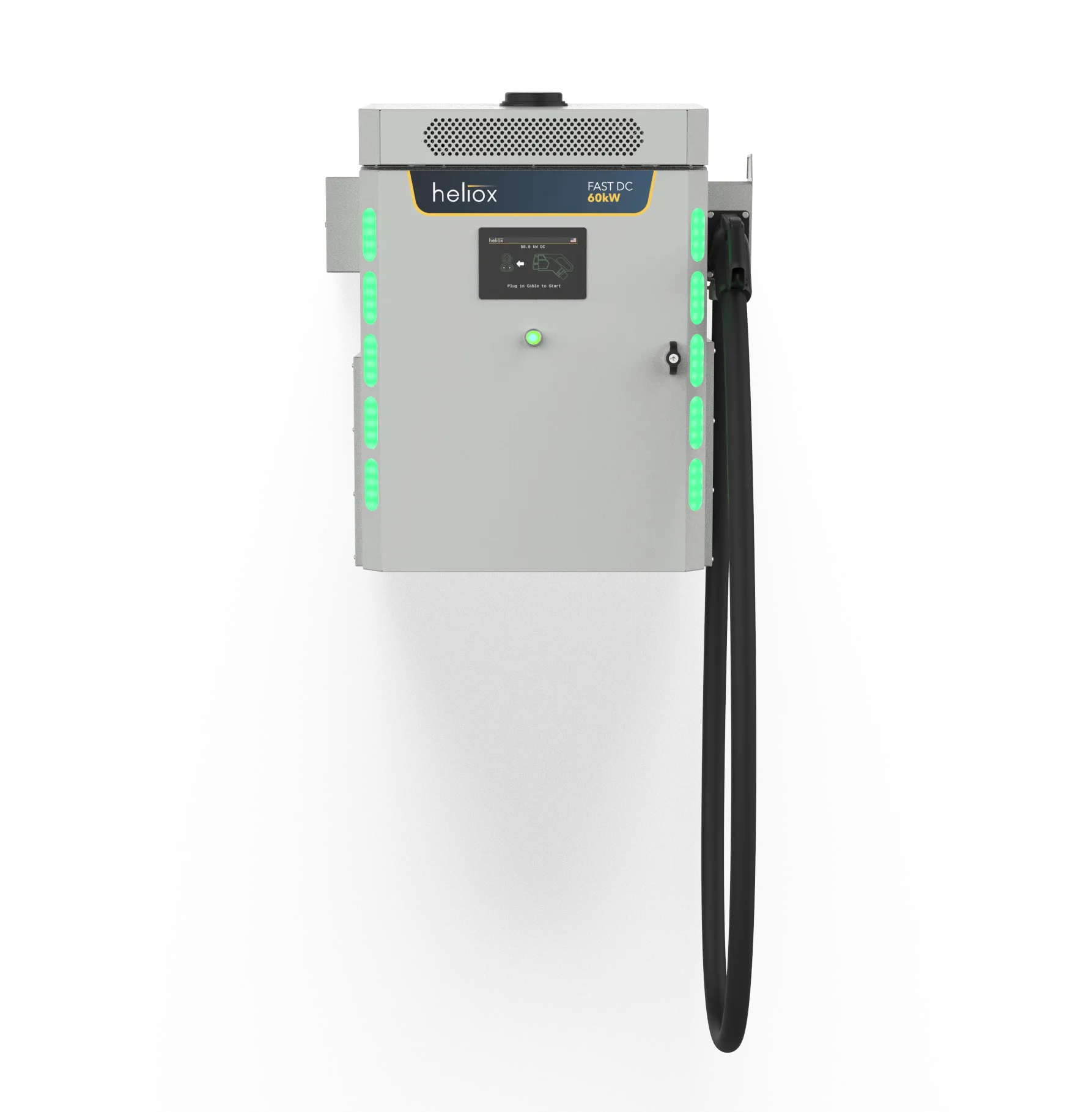 Heliox’s most adaptative and compact solution. The Heliox 60 kW charger is a versatile, user-friendly solution suitable for a wide range of vehicles, including cars, buses, and trucks. It offers seamless plug and-play functionality, making it an ideal choice for various charging needs, regardless of location or time.